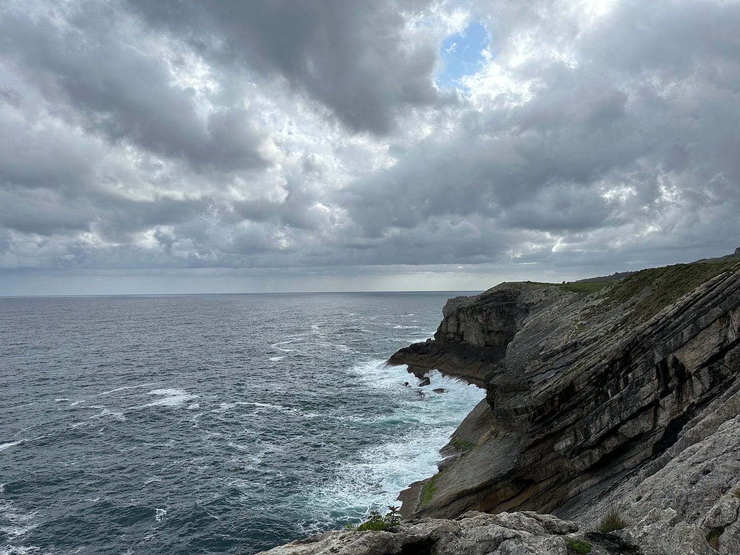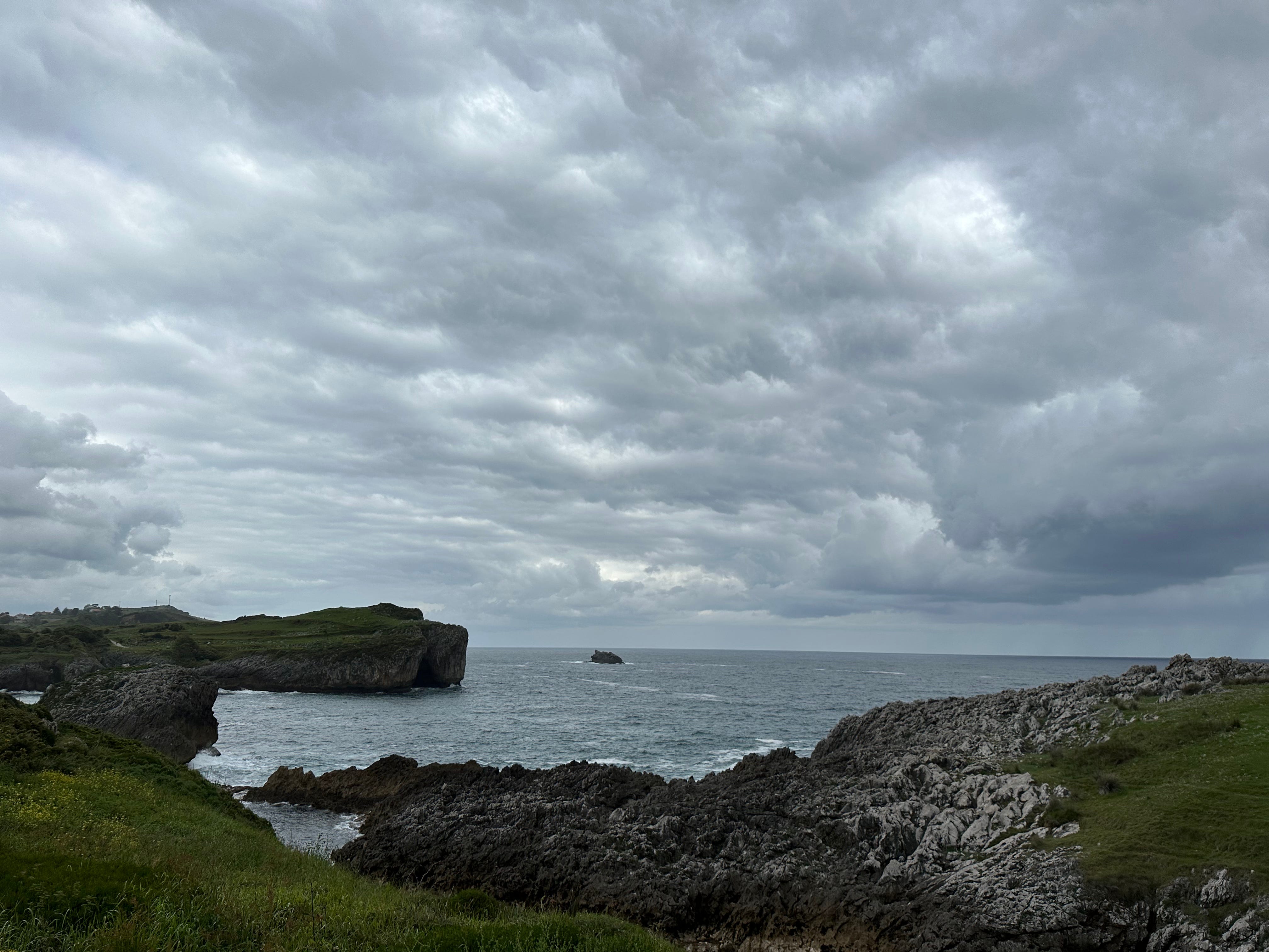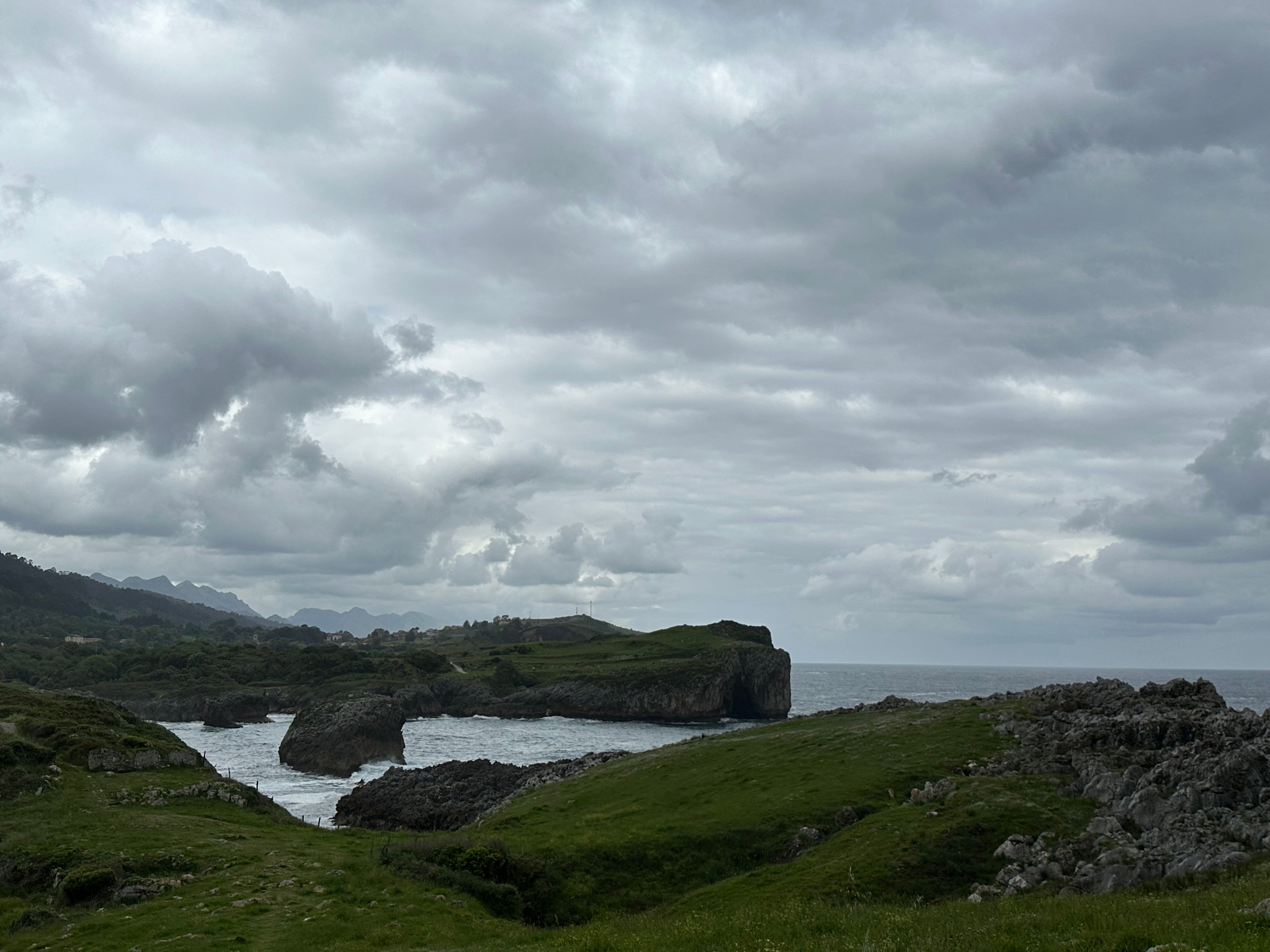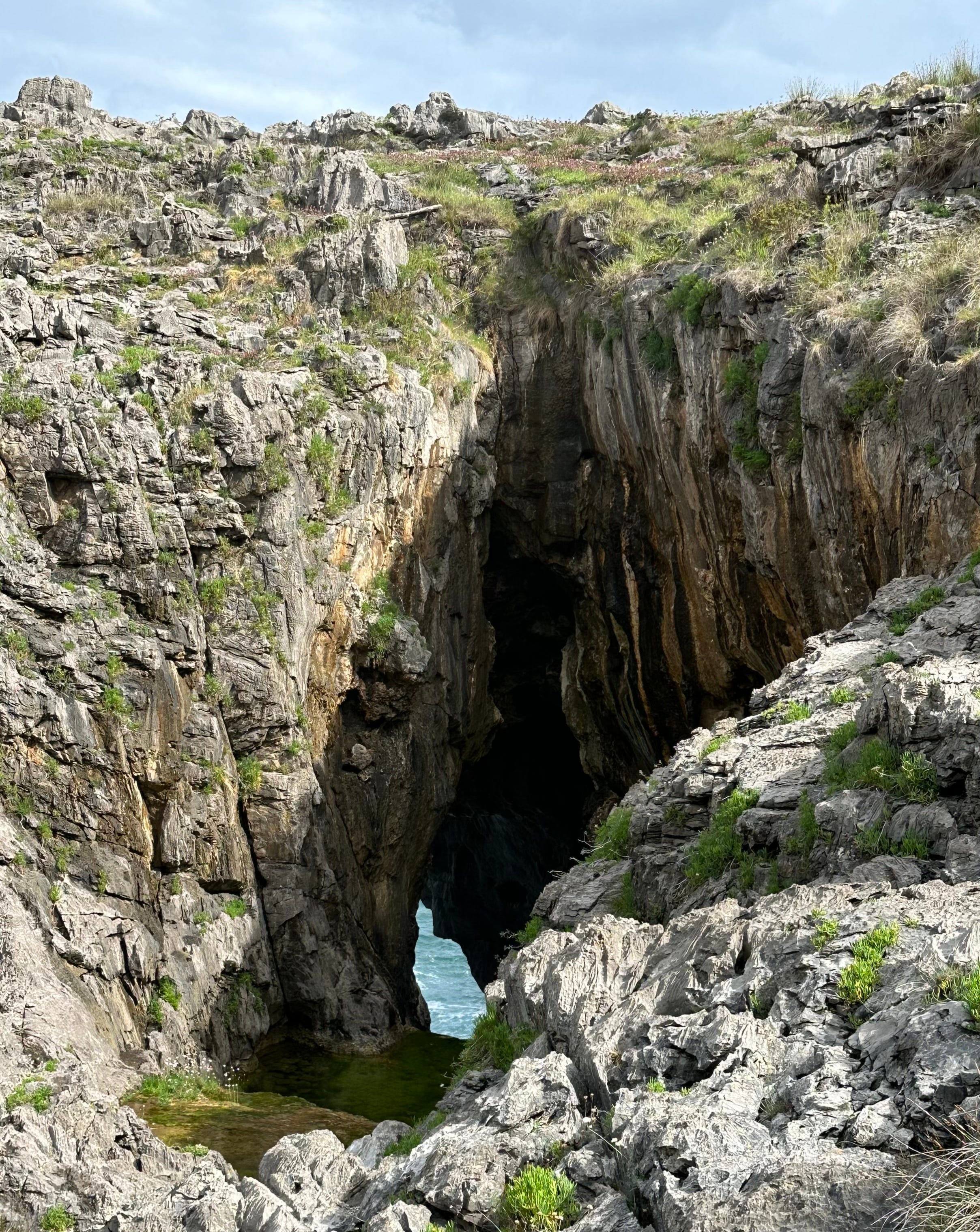 Asturias’s coast line is other-worldly. It’s dotted with “bufones” which are underground, hollowed portions of the coast where the surf pushes through on stormy occasions and sends spray shooting dozens of feet in the air through the small holes. The sea was too calm for us to see this spectacle today but the bufones nevertheless emit eerie, echoey blasts of sound from the surf running beneath the ground. I tried to capture some of these bufones in the pictures, but was too unnerved to get close enough or sufficiently down in them for good shots. There are lots of warnings not to get too close on stormy days because the force of the water through the holes is dangerous and you run the risk of slipping into them.