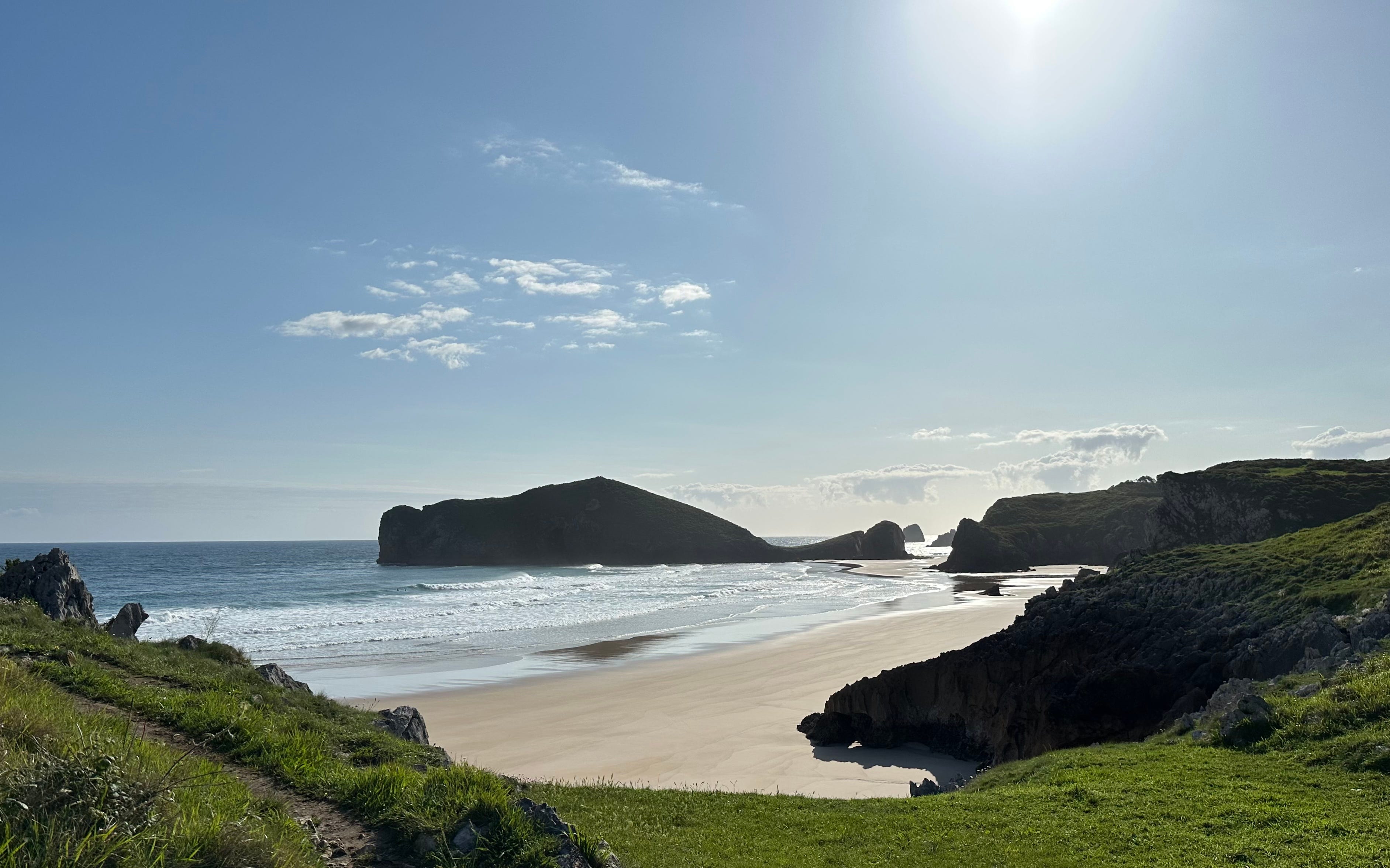 We needn’t have worried about our inauspicious Cantabrian farewell, because Asturias has welcomed us like a mother who sees one of her children approaching and throws her arms wide open. Indeed, she is spoiling us with good weather and her broad, even trails of soft earth so gentle and forgiving on our aging joints. Or perhaps Asturias is wooing us like a besotted lover drawing us in with her curvaceous and alluring coastline sparkling in the sunshine that we’re have missed for so long. In any event, there’s no doubt that Asturias has drawn us in and hooked us.